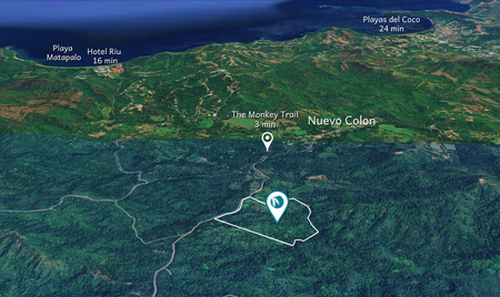 Nestled beside the charming town of Nuevo Colon, this expansive 72.4-acre (293,016m²) property is a hidden gem on the “Monkey Trail Road” adjoining the popular Congo Trail Ziplining facility.