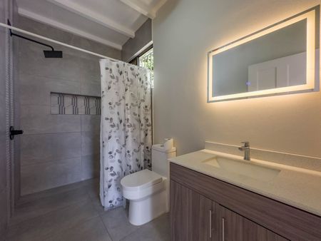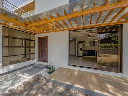Located in Playas del Coco, Anna’s Tree House is a newly built 1,323 sq. ft. home set on a 3,250 sq. ft. lot, offering a quiet setting and a spacious fenced garden with room to add a pool.