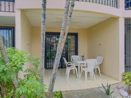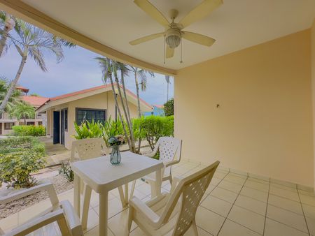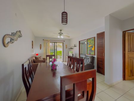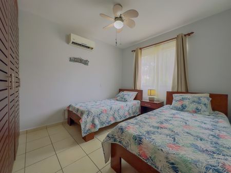 Green Turtle #1 is located on the ground floor and it overlooks the pool, it has a large terrace, 2 bed 2 bath, 70m2 / 750 sq. ft. offered fully furnished and equipped, AC throughout, ceilings fans. Low homeowner fees of $120 a month.