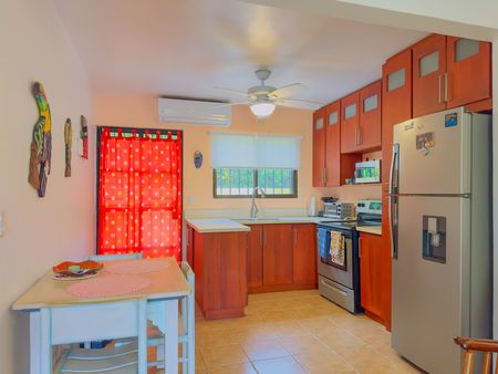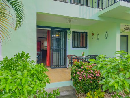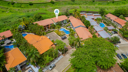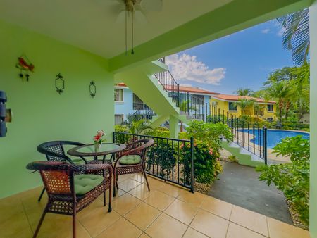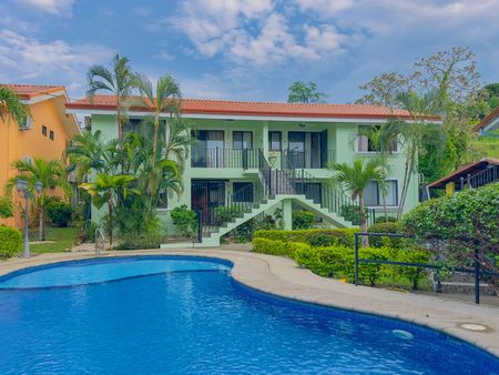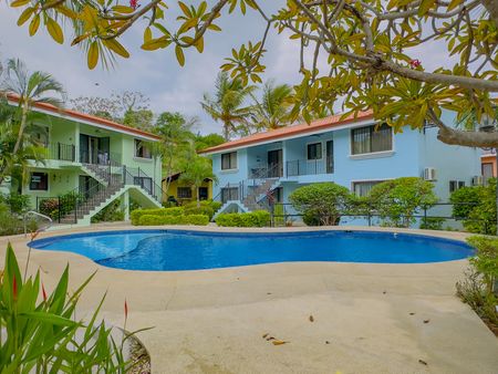 Tropical Waves is part of the colorful and freshly painted Las Palmas community—a walkable, well-kept neighborhood in Playas del Coco known for its beach proximity and friendly vibe. The complex offers a shared pool, plenty of parking, and a relaxed atmosphere just a 7-minute walk or quick 2-minute golf cart ride to the beach.